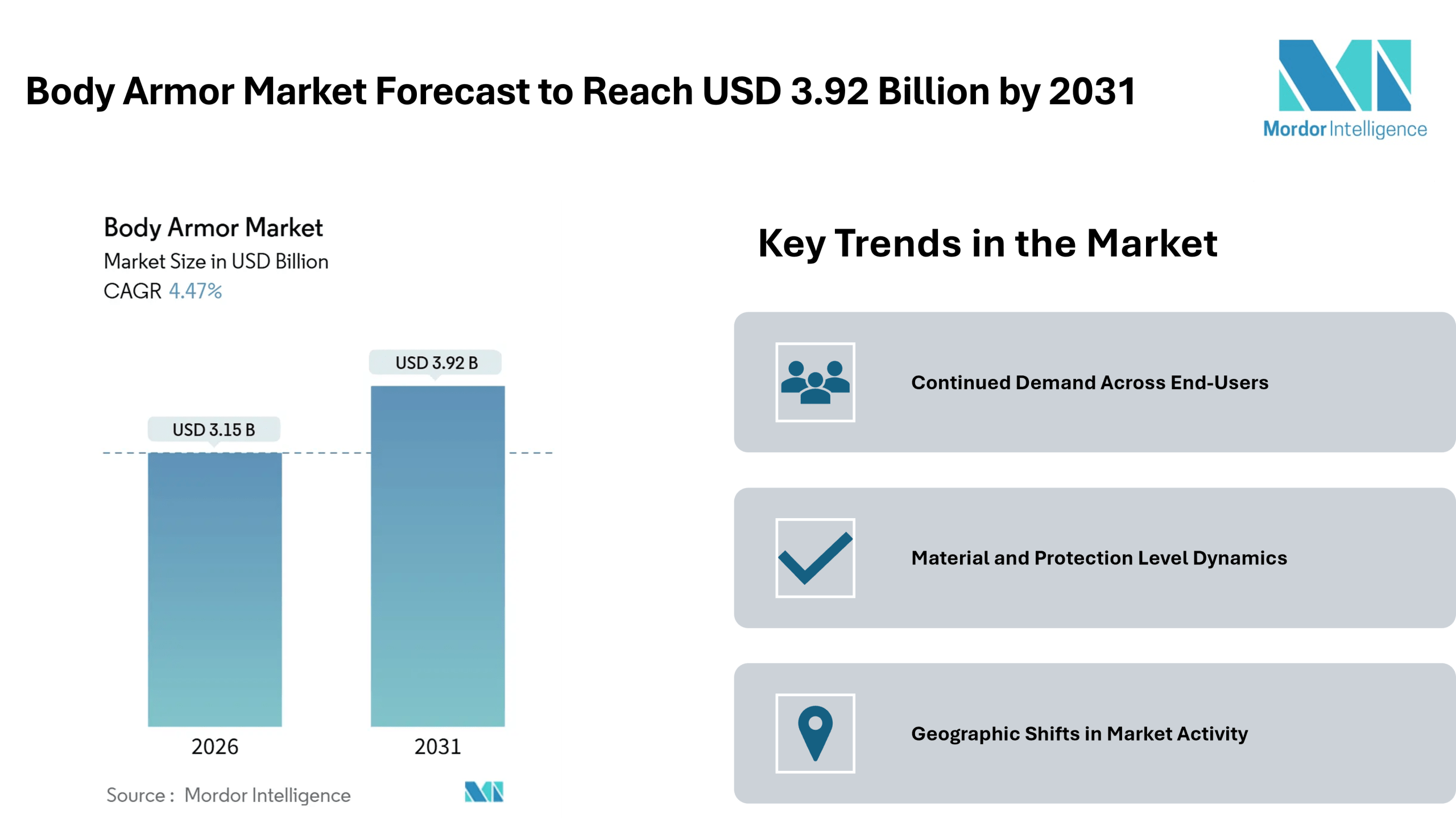 The body armor market size stands at USD 3.15 billion in 2026 and is projected to reach USD 3.92 billion by 2031, representing a 4.47% CAGR, according to recent industry analysis by Mordor Intelligence. This reflects continued interest across defense forces, law enforcement agencies, and civilian segments for protective equipment that balances weight, protection, and comfort. Rising personal and institutional safety needs, along with ongoing military modernization efforts in several regions, contribute to sustained Body Armor Market growth through the forecast period.