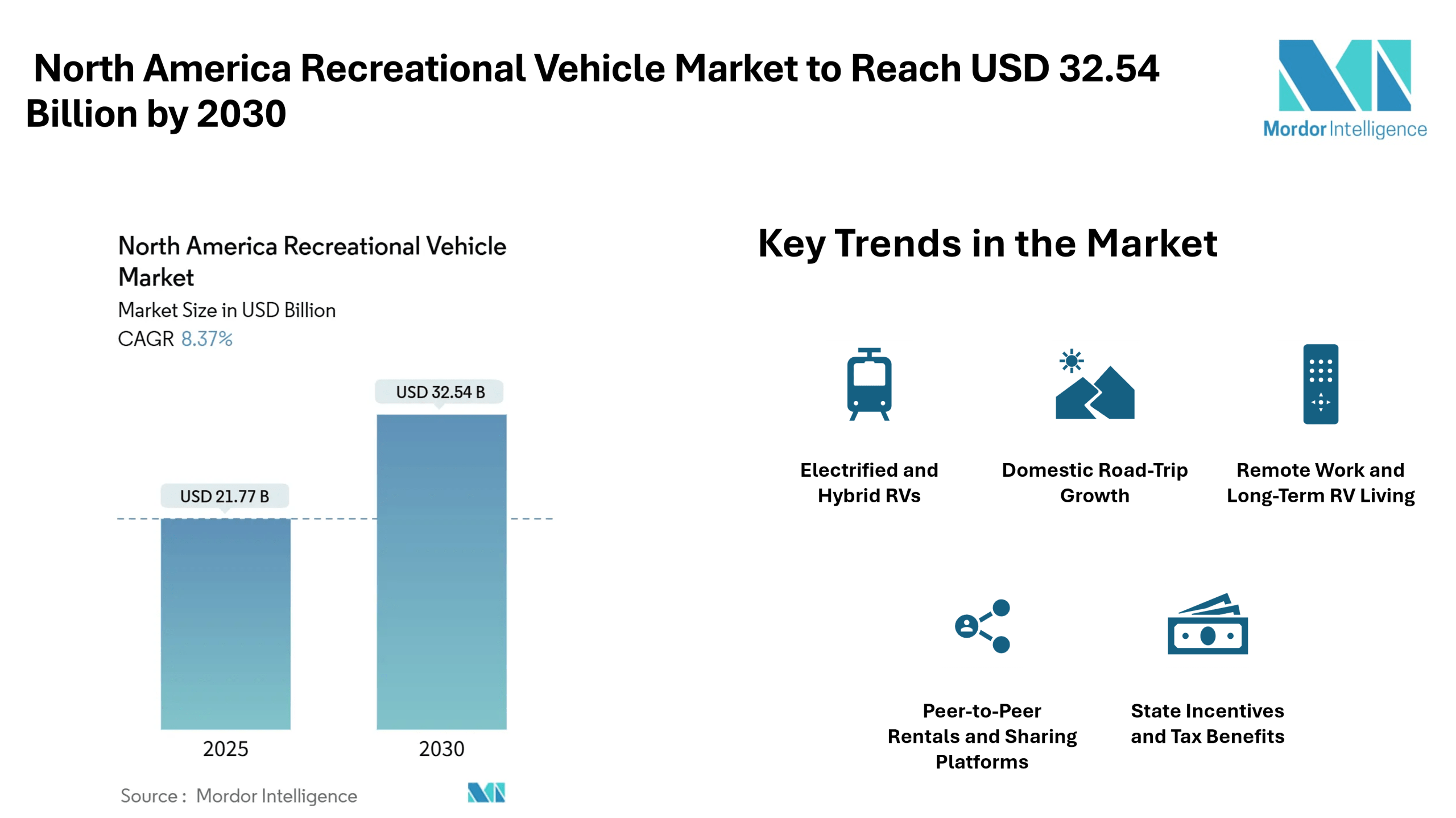 North America Recreational Vehicle Market to Reach USD 32.54 Billion by 2030, Driven by Remote Work Trends and Electrified RV Adoption – Mordor Intelligence